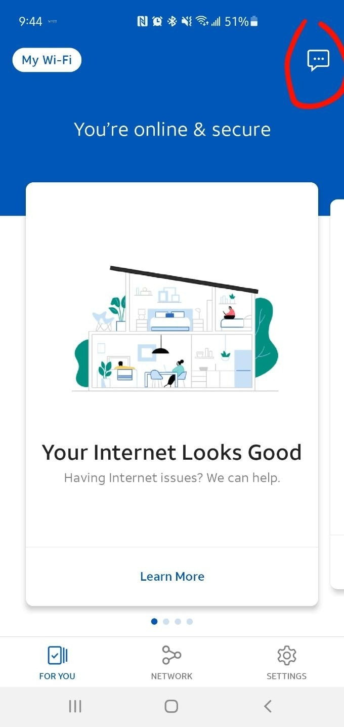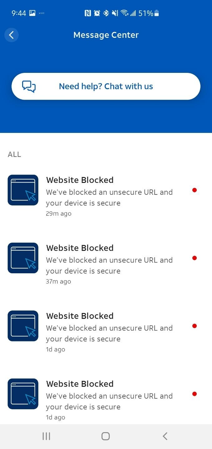 After the donor in question receives a blocked webpage error when attempting to access a giving page, they may open their Smart Home Manager App. Once open, clicking on the message bubble icon will open alerts for recently blocked websites.