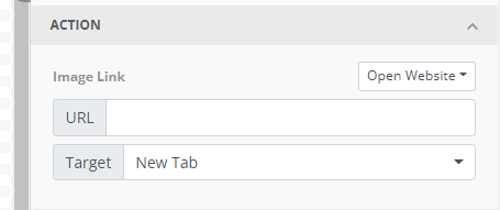 Click on the image added, under Action set the URL you would like to be opened when the image is clicked on.