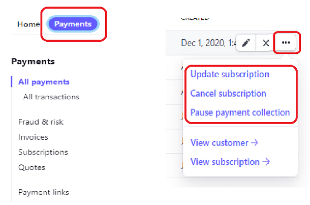 Updating, Pausing, or Canceling a Subscription Payment in Stripe